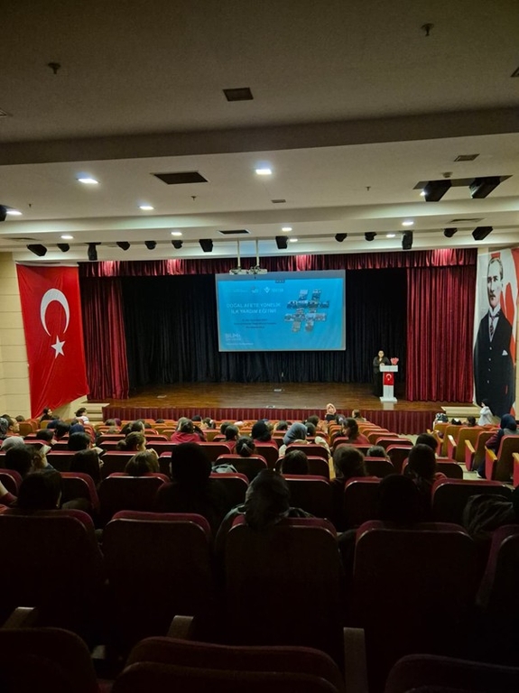 The talk was given by Dr. Aylin KURT, a faculty member of the Department of Child Health and Diseases Nursing at our faculty. Dr. Aylin KURT provided students with basic information about natural disasters such as earthquakes, floods, and landslides, and explained in detail the correct behaviors during and after a disaster.